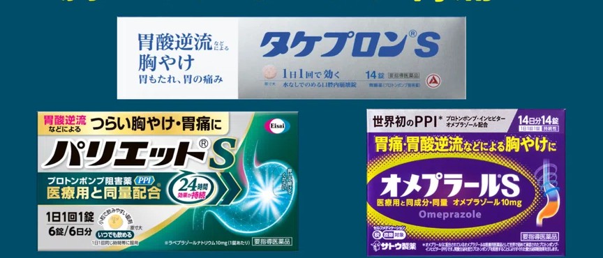具体的にはタケプロンSやパリエットS、オメプラールSなどの商品名で発売されています。